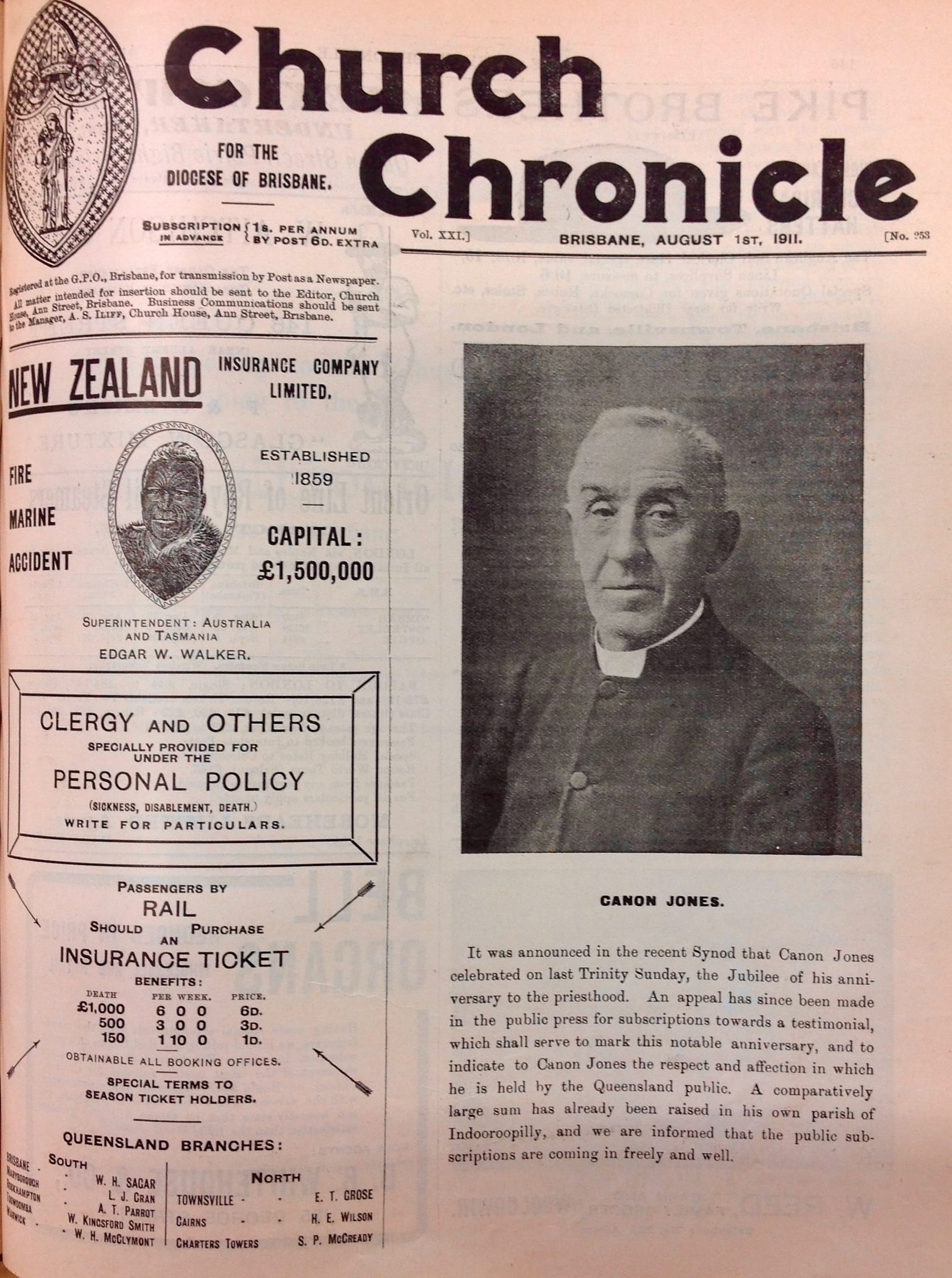 Thus the life of Canon Jones ran through almost the whole of the history of the Church of England in Queensland.